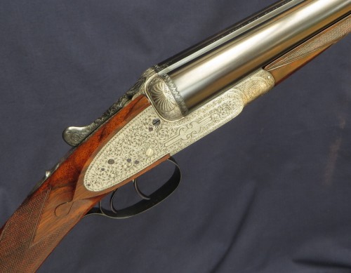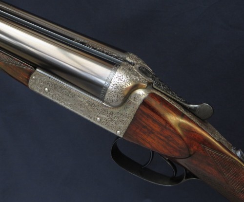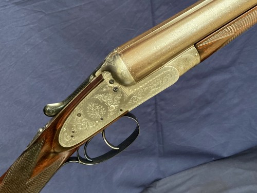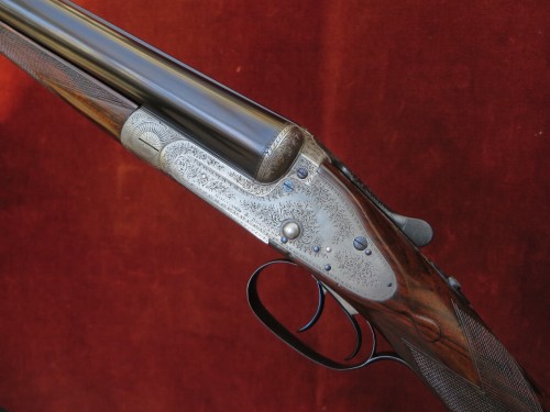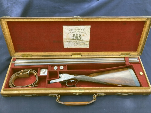 1890 Holland & Holland 12b 1st Type Royal with two sets of barrels, both 30”, one 2 ½” Nitro and the other 3” Nitro (1200 bar). Presented in a leather case blocked for both sets of barrels. This is an absolutely delicious example of H&H’s premier model. It features the best level of engraving and with its two sets of barrels can handle everything from soft, 2 ½” x 3/4oz up to the occasional 3” wildfowling load (not Superior Steel).