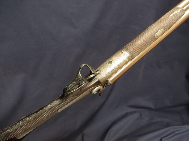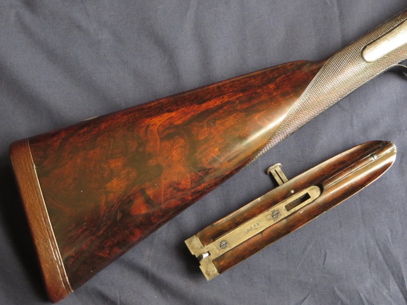 the rear comb of the stock and a 3/4” leather covered recoil pad.
