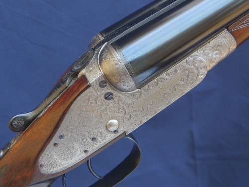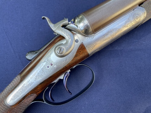1890 Holland & Holland 12b 1st Type Royal with two sets of barrels, both 30”, one 2 ½” Nitro and the other 3” Nitro (1200 bar). Presented in a leather case blocked for both sets of barrels. This is an absolutely delicious example of H&H’s premier model. It features the best level of engraving and with its two sets of barrels can handle everything from soft, 2 ½” x 3/4oz up to the occasional 3” wildfowling load (not Superior Steel).