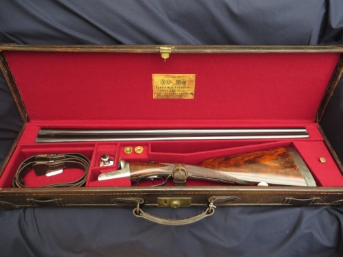 1898 James MacNaughton12b Roundaction Ejector, 28” x 2 ½” rebarrelled by Dickson around 1959, beautiful wood, relined leather case.
